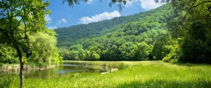 summer landscape with river and blue sky